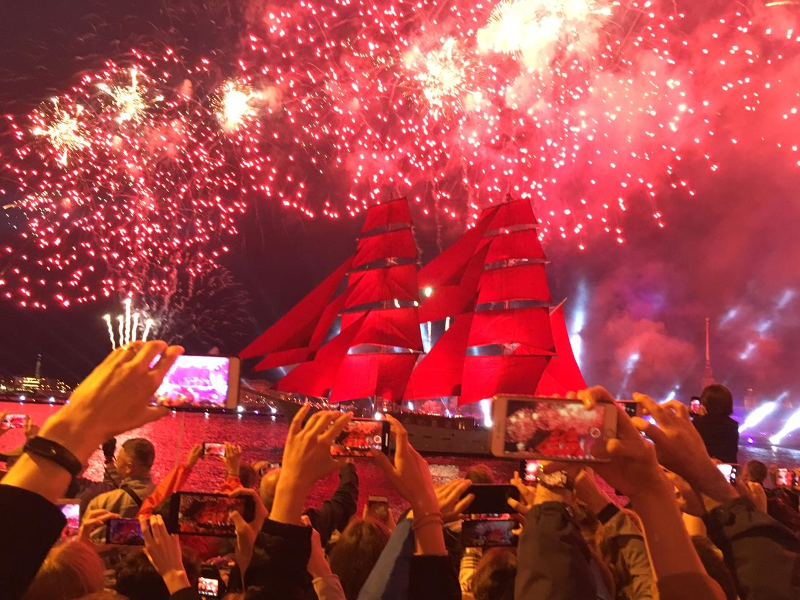 híres bíborvörös vitorlást hatalmas tűzijáték kíséretében